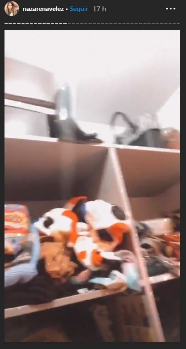 "Quiero hacer una limpieza de todo porque yo ya había ordenado en la cuarentena pero mi vestidor está hecho mier…, todo vencido, porque le pongo cantidades de ropa que no existen. Mirá lo qe soy, un desastre. Tiro las polleras de cualquier forma aca arriba. Tengo 300 iguales de diferentes colores pero igual no saben la cantidad de ropa que regalé, un montón. Y hasta le di a mi hermana, pero así y todo tengo todo esto que pienso que es esencial y que sé que no es así", comentó Nazarena.