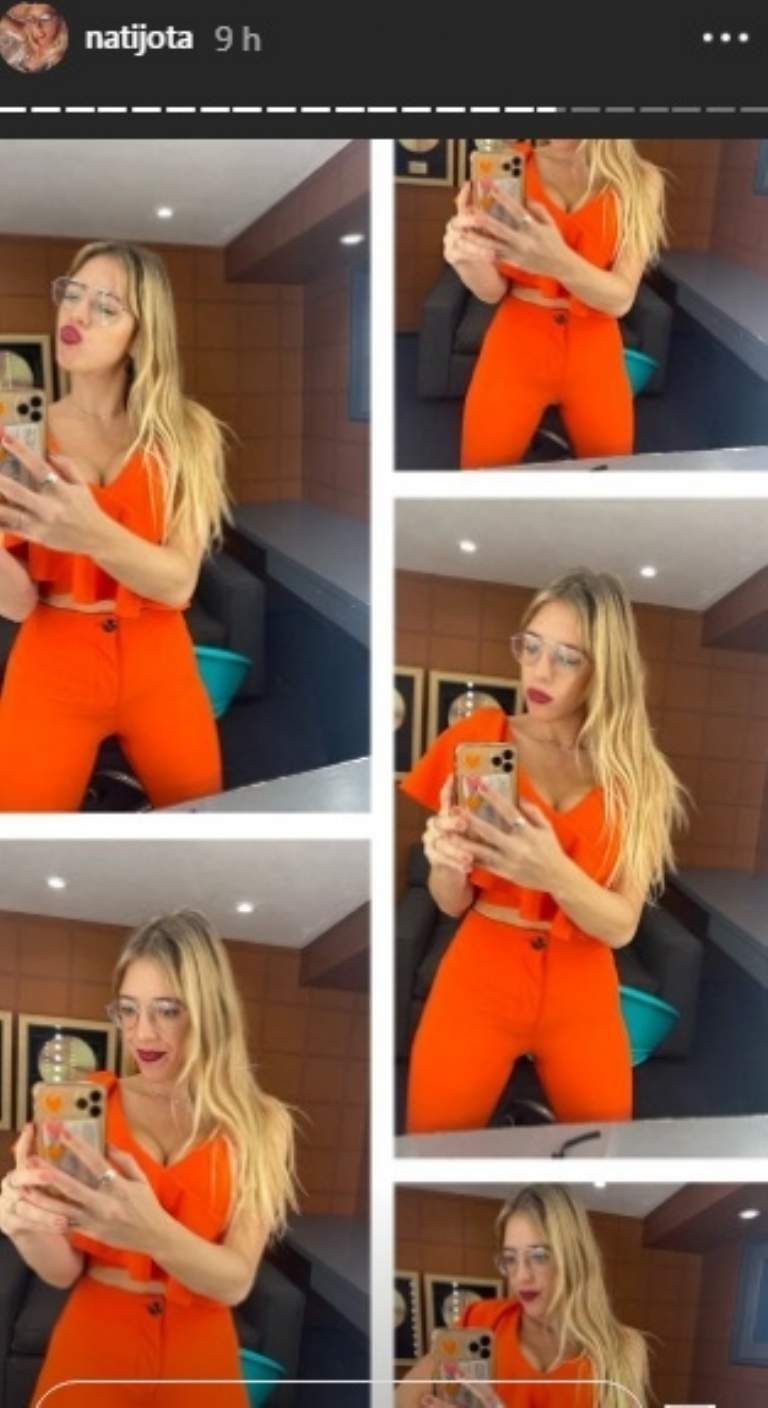En dicha 'story' se la puede ver a la llamativa rubia multiplicada por cinco en una suerte de collage bien naranja que prende fuego todo.