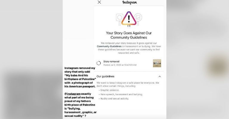 Sin embargo, la red social, perteneciente a Facebook, esgrimió que la publicación infringió sus normas comunitarias sobre "acoso y bullying" y la retiró, agregando que no permiten publicar en su plataforma contenidos que incluyan "violencia gráfica", "lenguaje que incita al odio, acoso y bullying" o "desnudos y actividad sexual".