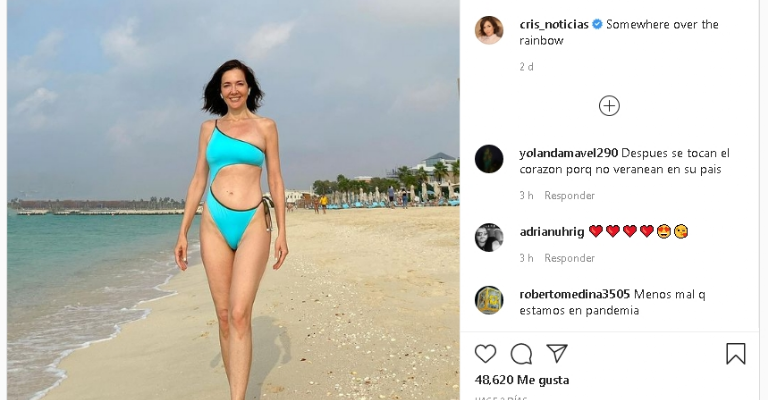 Cristina compartió dos imágenes en su cuenta de Instagram, luciendo una original trikini que deja al descubierto su marcada figura.
