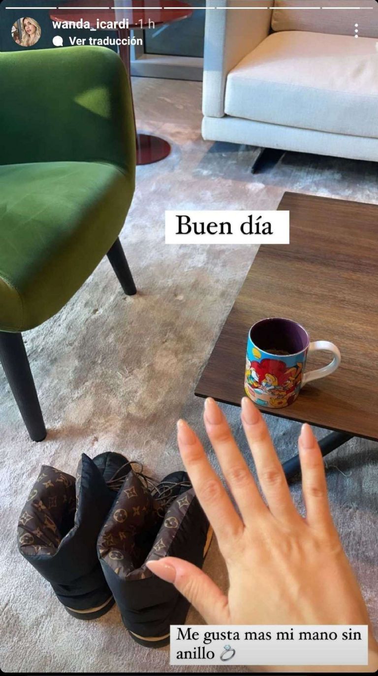 “Me gusta más mi mano sin anillo”, publicó la mediática en una historia de Instagram, acompañada de una instantánea. En la imagen, además, se ve a una taza de Alicia en el país de las maravillas, la versión animada de Disney, y dos botas. Un instantánea en soledad. Sin embargo, hay un detalle: el mensaje va acompañado de un primer plano de su mano derecha; no de la izquierda donde lleva su alianza de casada.