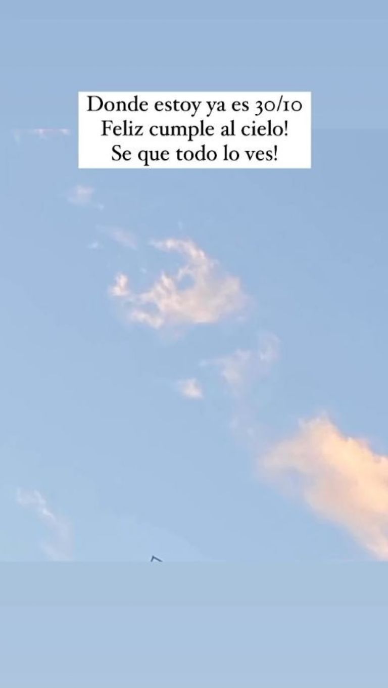 “Donde estoy ya es 30/10. ¡Feliz cumple al cielo! ¡Sé que todo lo ves!”, escribió Claudia en su cuenta de Instagram, quien se encuentra en Madrid.