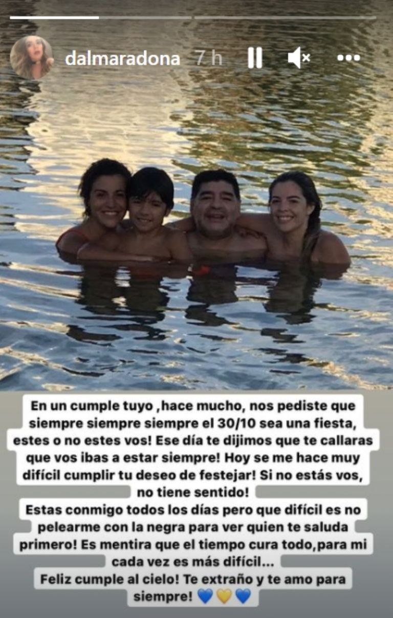 Quienes también aprovecharon sus redes sociales para recordar a Diego fueron sus hijas, Dalma y Gianina. Ambas compartieron fotos de momentos con el futbolista y lo acompañaron de sentidas palabras.