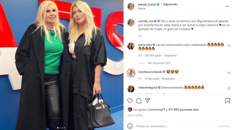 "Sos y seras la número uno @gimenezsuok gracias por enseñarme en cada charla a ser siempre mejor persona. Sos un ejemplo de mujer un gran ser humano" escribió Wanda junto a una galería de imágenes de las dos en el estadio del Paris Saint Germain.