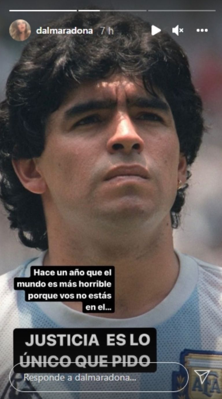 "Hace un año que el mundo es más horrible porque vos no estás en él...", escribió Dalma Maradona en su cuenta de Instagram al cumplirse un año del fallecimiento de Diego Maradona.