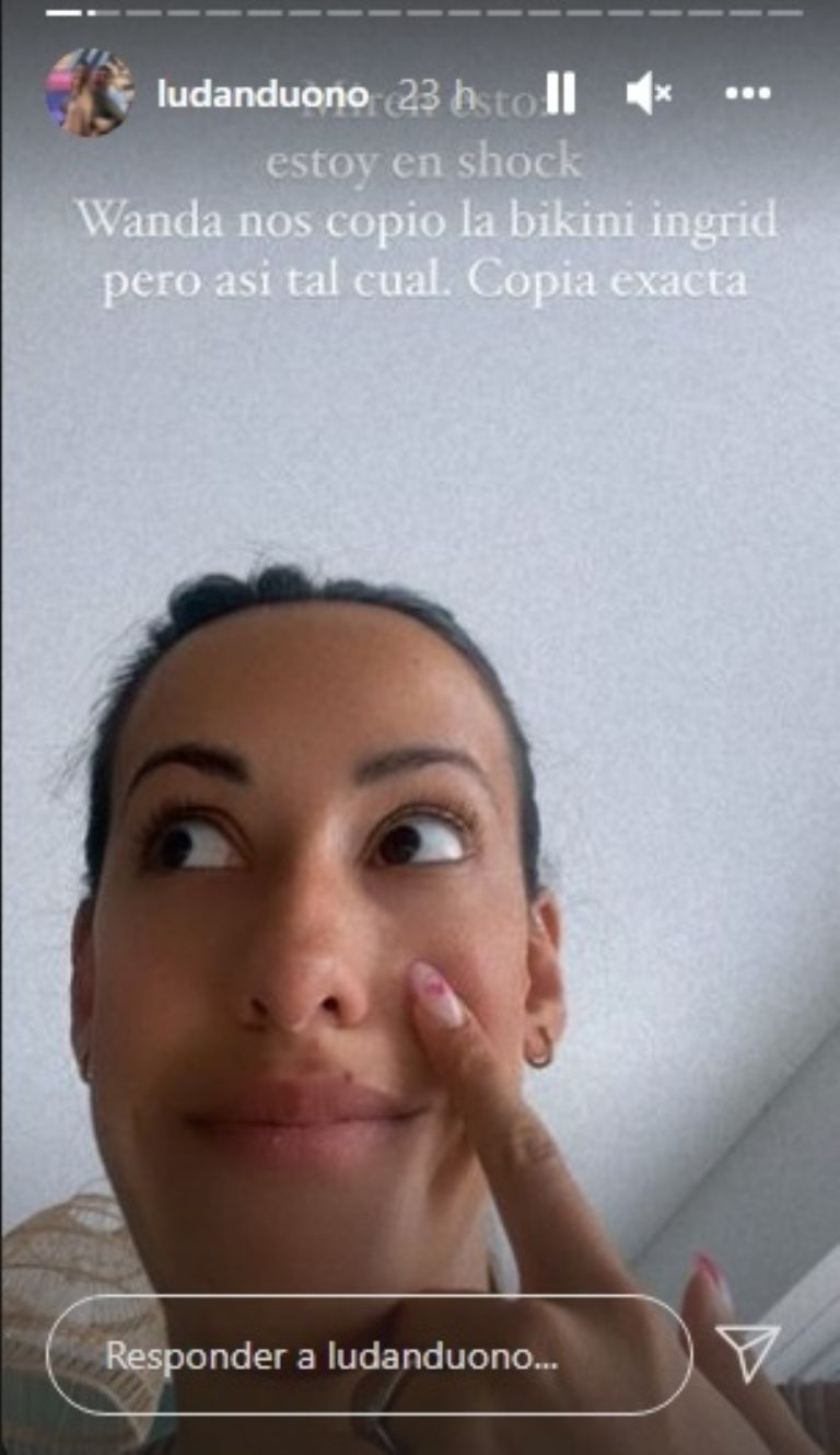 "Miren esto. Estoy en shock. Wanda nos copió la bikini ingrid pero así tal cual. Copia exacta. Esto me lo espero de algún emprendedor pequeño, pero no de ella. Es exactamente el mismo modelo y es un diseño nuestro" y mostró los modelos que parecen réplicas exactas.