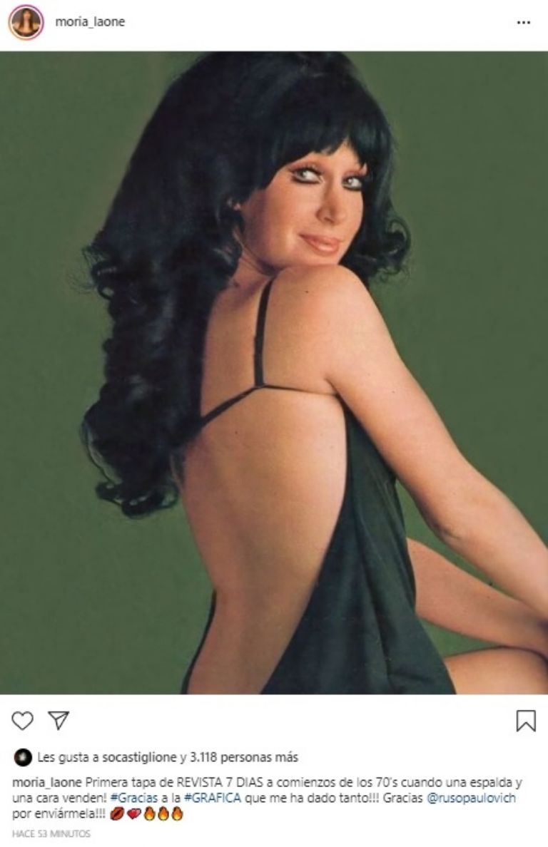 "Primera tapa de REVISTA 7 DIAS a comienzos de los 70's cuando una espalda y una cara venden! #Gracias a la #GRAFICA que me ha dado tanto!!! Gracias @rusopaulovich por enviármela!!!", comentó la 'One'.