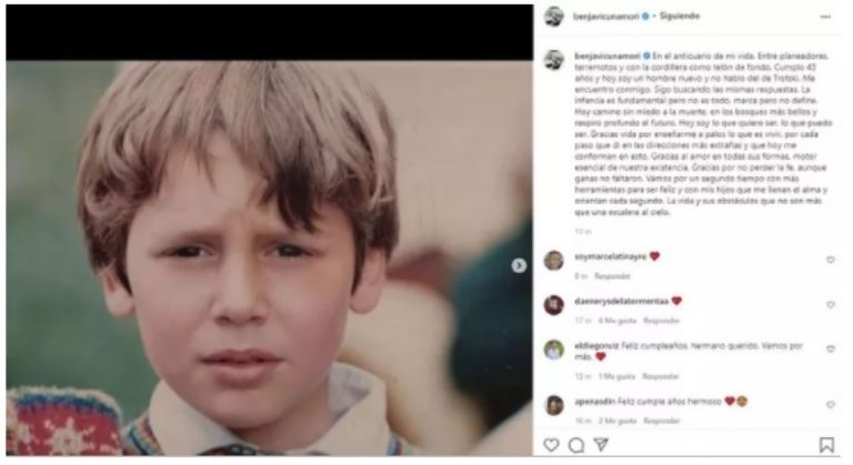 “En el anticuario de mi vida. Entre planeadores, terremotos y con la cordillera como telón de fondo. Cumplo 43 años y hoy soy un hombre nuevo y no hablo del de Trotski. Me encuentro conmigo. Sigo buscando las mismas respuestas”, comentó.