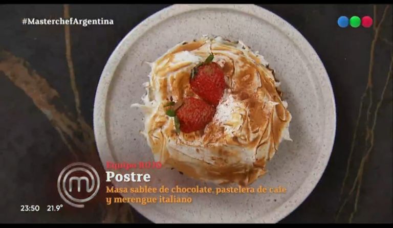 Pero el resultado final fue impactante: Sol Pérez presentó una tarta de cacao con pastelera de café y merengue italiano. "Es la primera vez que hago este postre, nunca había hecho sablé de chocolate".