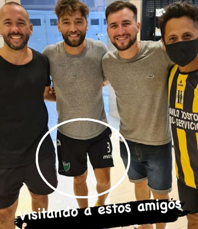 La particularidad de la imagen es el pantaloncito que luce Tamagnini, intérprete del éxito cuartetero "El mismo aire". Se trata de un short del Club Atlético San Martín, seguramente un obsequio de algún jugador o fanático verdinegro.