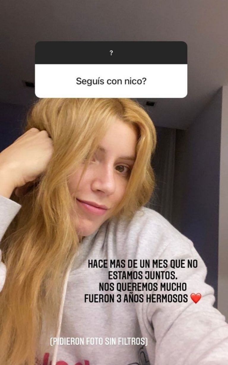 Laurita Fernández no le dio muchas más vueltas al tema y a través de una historia en Instagram confirmó que se separó de Nicolás Cabré.