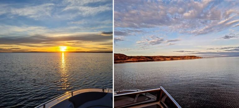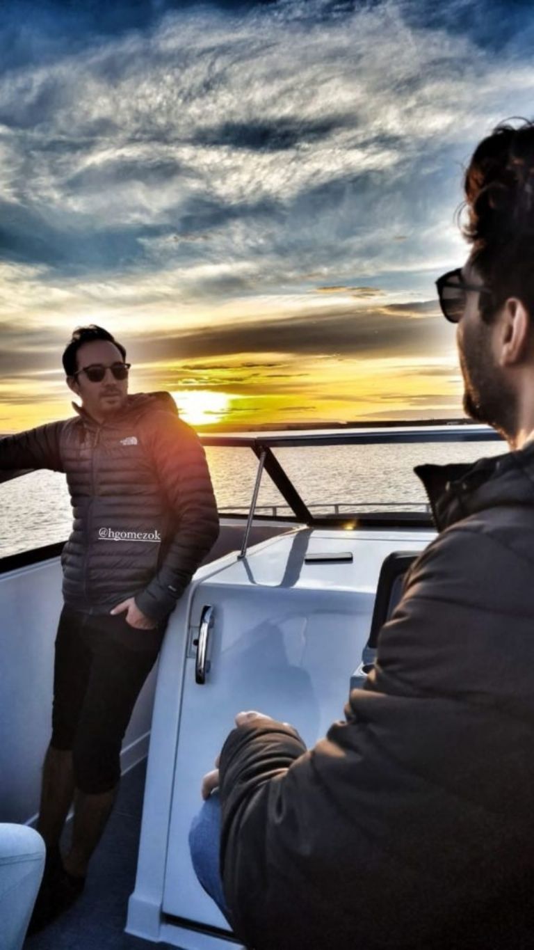 Según mostraron ambos en sus cuentas de Instagram, y gracias a la comparación que realizó el usuario Chusmeteando, pasaron el día arriba del transporte acuático que les brindó unas vistas espectaculares, aunque eso sí, un poco abrigados por el viento que azotaba en sus rostros.
