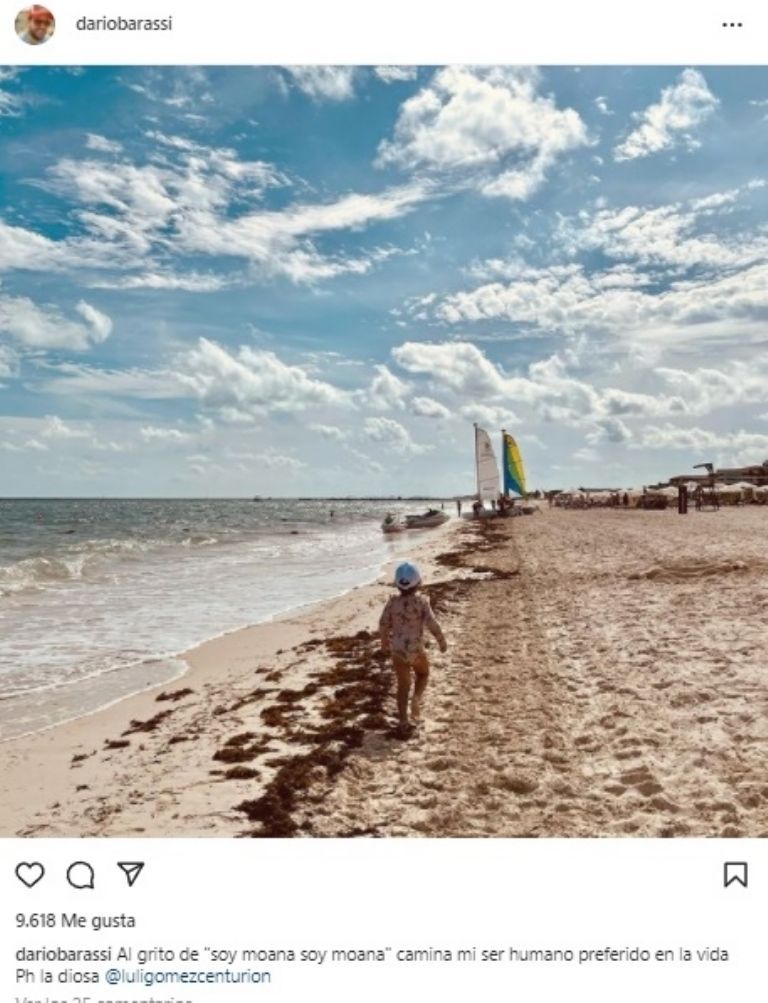 "Al grito de "soy moana soy moana" camina mi ser humano preferido en la vida", escribió el también actor mostrando a Emilia caminando por la playa.