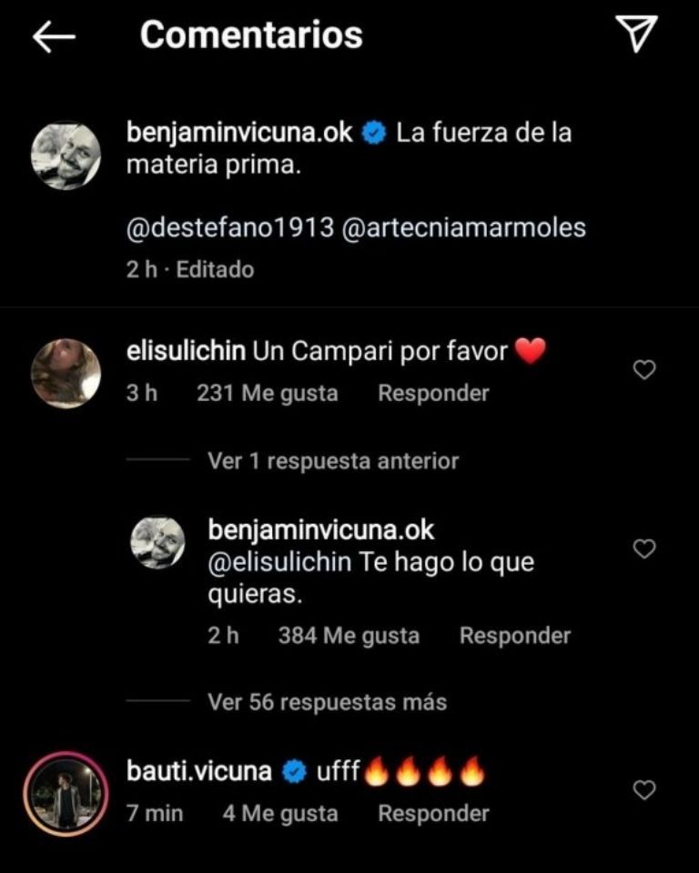 Hace algunas horas el padre de Magnolia y Amancio compartió en su cuenta de Instagram un video promocionando una reconocida bebida y fue entonces que quedó en evidencia que la nueva parejita está en su mejor momento. Eli Sulichin le pidió que le prepare un Campari y Benjamín Vicuña respondió que está dispuesto a hacerle lo que ella quiera.