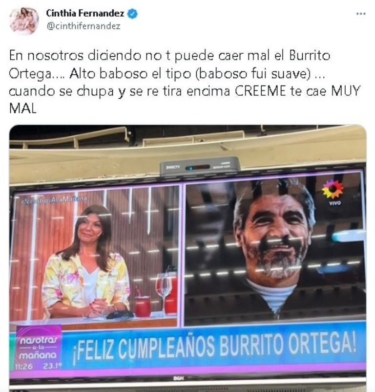 Mientras en la televisión se hablaba del cumpleaños del "Burrito" Ortega, la panelista Cinthia Fernández sorprendió a todos con un tremendo mensaje en contra del ex jugador, a quien acusó de "baboso".