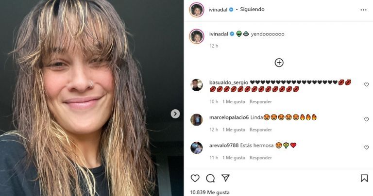 "Yendo" escribió Ivana junto al emoji de un ovni y un marcianito y una foto con un flequillo predominante.
