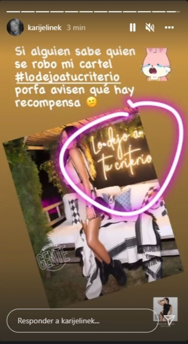 SUSCRIBITEKarina Jelinek denunció en su cuenta de Instagram haber sido víctima de un robo bastante particular.