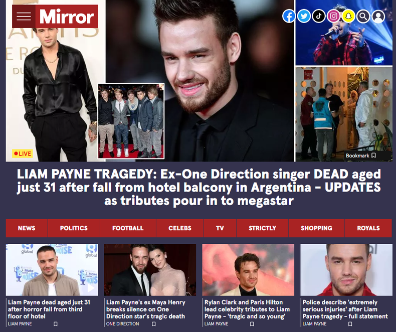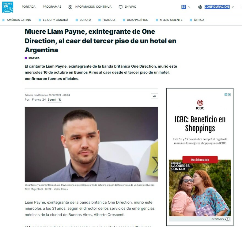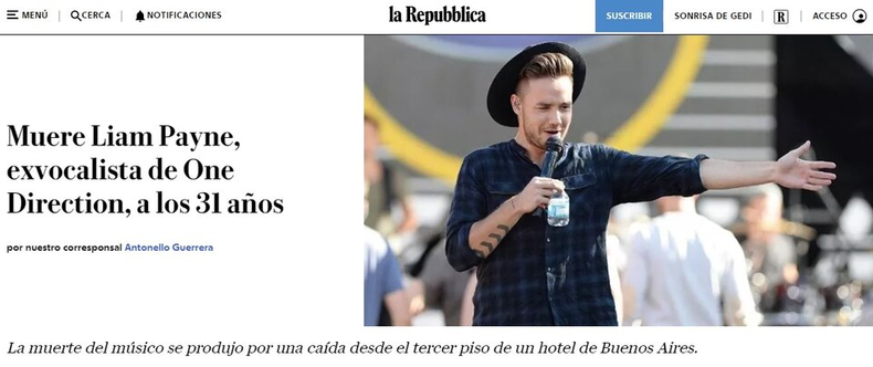 La noticia de la muerte de Liam Payne, ex miembro de la banda británica One Direction, fue retratada por distintos portales a lo largo y ancho del planeta. Los medios internacionales no tardaron en reflejar la impactante noticia del fallecimiento del cantante, que ocurrió en un hotel del barrio porteño de Palermo, en la Ciudad de Buenos Aires.