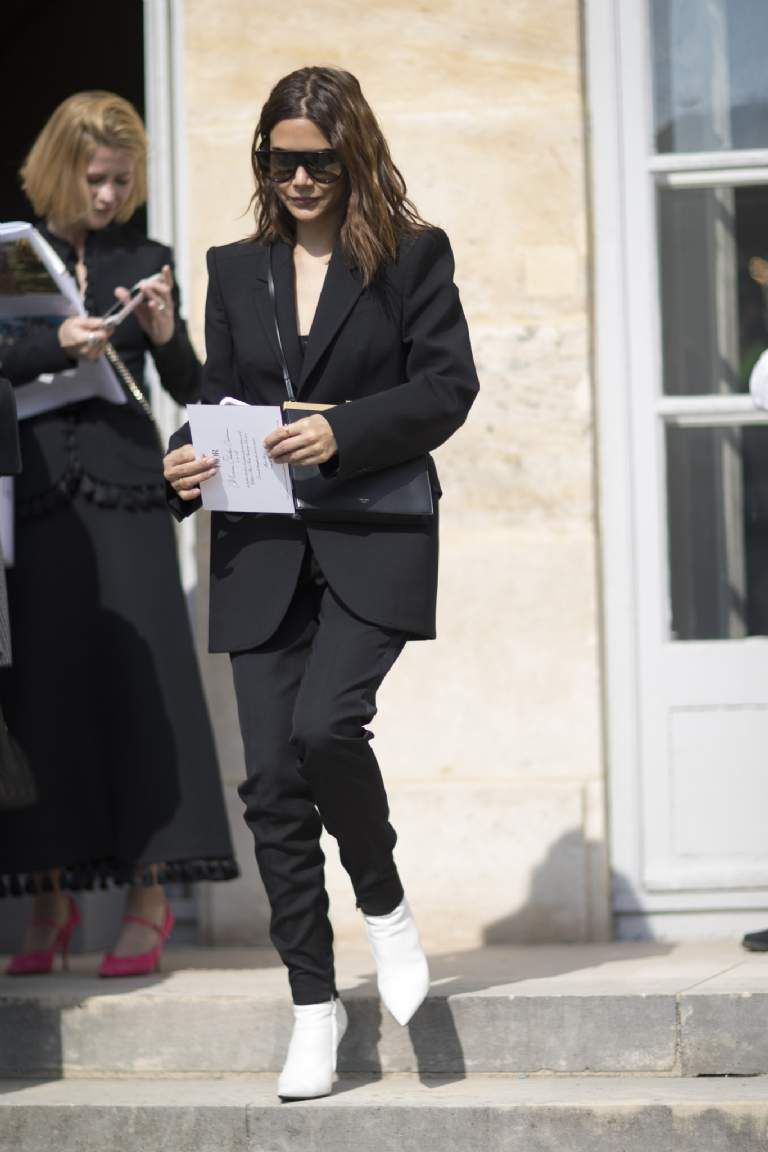 Rompe la monotonía de un sencillo traje-pantalón con botines en otra tonalidad