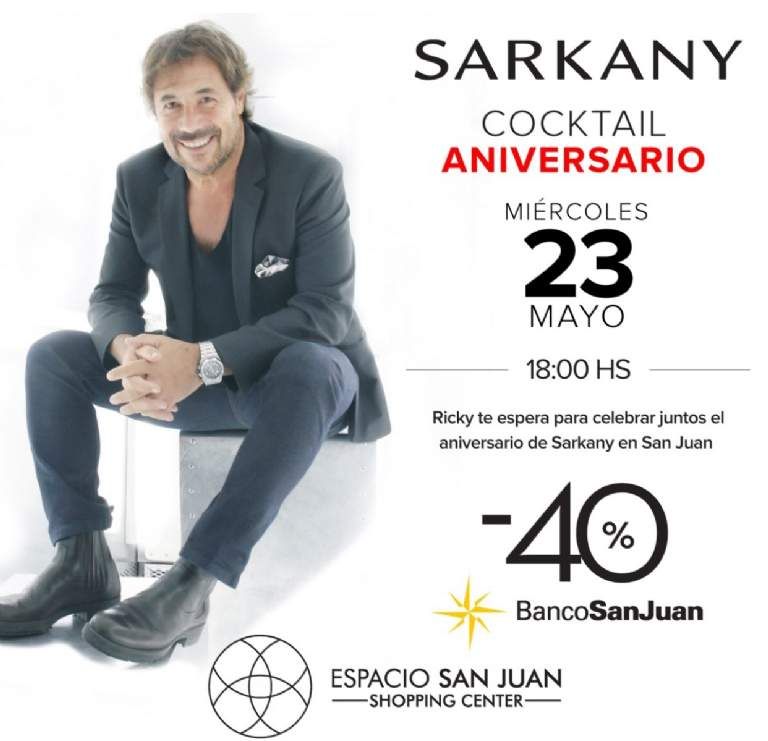 Sarkany festeja 13 años de presencia en San Juan y nada menos que Ricky, creador de la marca, estará en la provincia para pasar una tarde junto a las fanáticas de sus diseños. Desde las 18 de este miércoles en el Espacio San Juan, junto a su amiga Carla Martín y su equipo, serán parte de un evento imperdible.