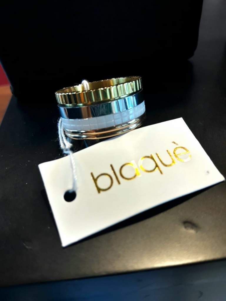 SUSCRIBITEAnillo de acero quirúrgico con detalles en baño dorado y cobrizo, de la línea BLAQUÉ.