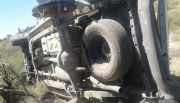 En horas de la siesta una camioneta Chevrolet S-10 de la Brigada de Investigaciones Sur sufrió un violento vuelco en Media Agua, cuando transitaba por la Ruta 40.