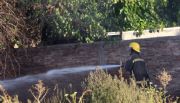 El rápido accionar de Bomberos impidió que las llamas tomaran los olivos del terreno.