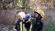 Una dotación tuvo que acudir y tirar abajo el alambrado que tenía como cerramiento el terreno para poder ingresar con el camión.