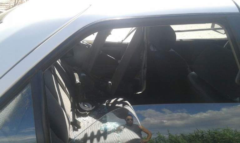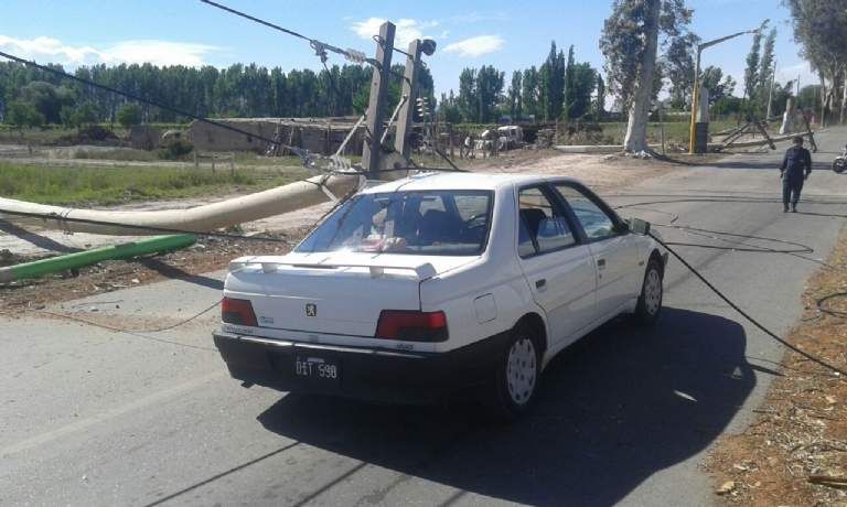 Todo ocurrió en horas de la tarde sobre calle Nacional a metros de calle El Bosque. Por ahí circulaba un Peugeot 405, con cuatro ocupantes adentro. El viento tiró el poste del tendido eléctrico y éste le reventó el vidrio al auto y terminó adentro del mismo.