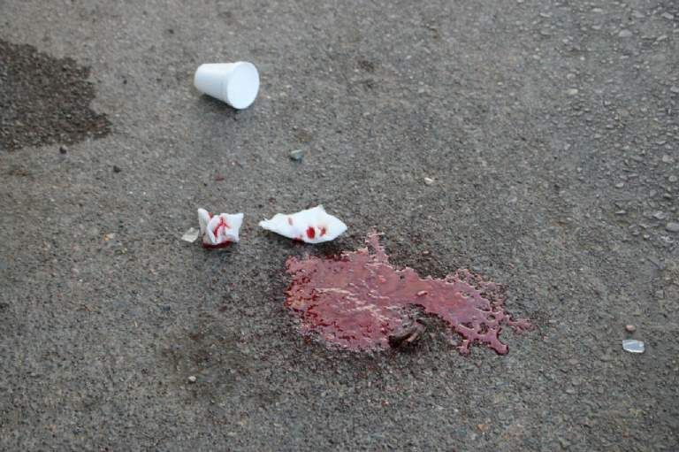 Cerezo fue trasladada de urgencia al Hospital Rawson con golpes en todo su cuerpo. En la calle quedaron rastros de sangre producto del fuerte impacto.