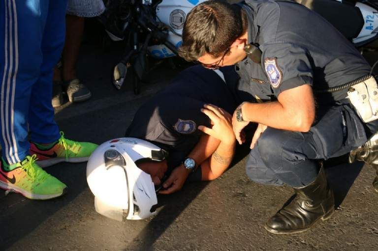 Según dijo el ciclista llamado Facundo Rioja, el uniformado se le atravesó en la moto y terminaron impactando de forma violenta.