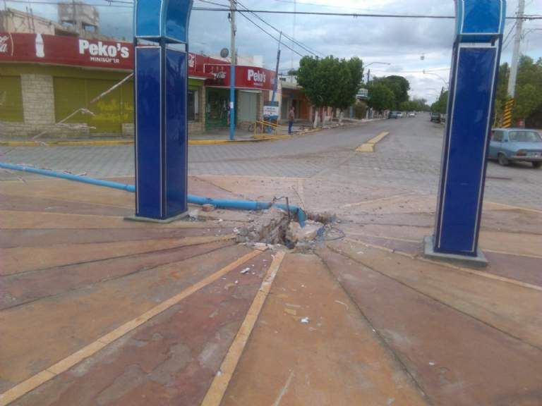 La camioneta impactó un poste de luz y lo tiró abajo. El vehículo quedó destrozado pero, afortunadamente, los ocupantes no sufrieron heridas de consideración.