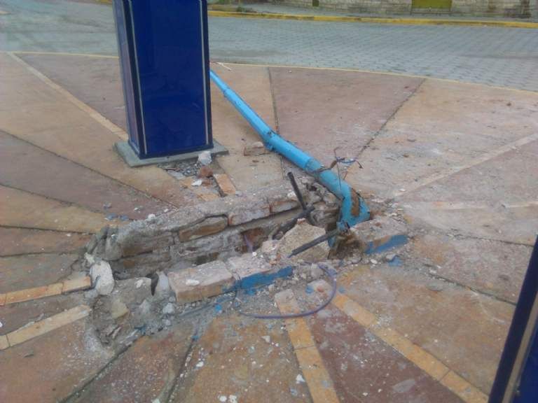 El accidente ocurrió a la una de la madrugada cuando el vehículo, con dos hombres a bordo, circulaba por calle La Laja de Sur a Norte. Al llegar a la intersección con Nacional no vieron la rotonda y se terminaron subiendo arriba.