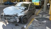 Los autos implicados fueron dos autos Corsa (uno remis) y un Chevrolet Onix. Este último se llevó la peor parte al terminar arriba de la vereda de una conocida farmacia. La ocupante del vehículo, a quien se le activó el airbag, debió ser traslada al Hospital Rawson con heridas menores.