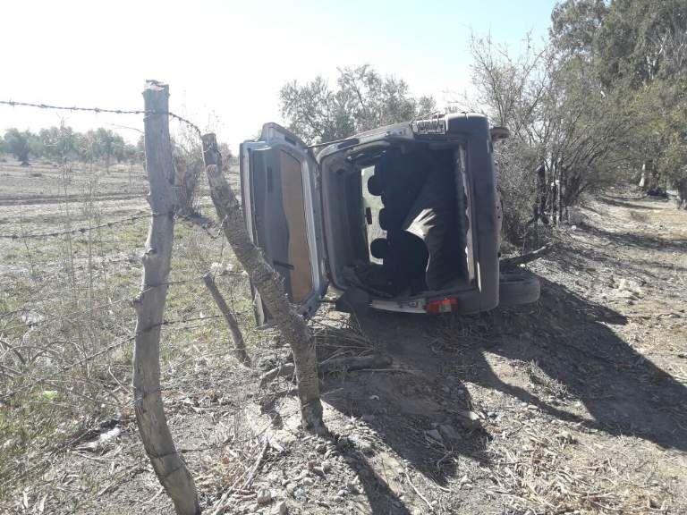 La camioneta Peugeot Partner sufrió una falla mecánica mientras cirulaba por calle San Miguel, entre 6 y 7. En ese tramo al vehículo se le cortó el eje de la rueda trasera y la mujer perdió el control y terminó volcando.