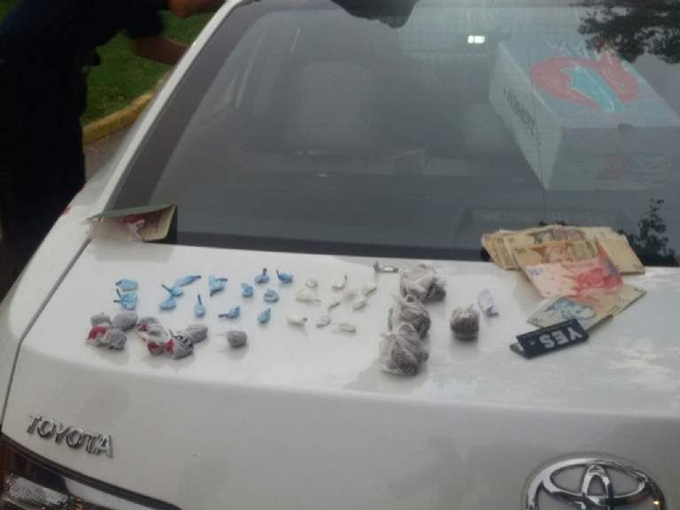 En un palpado de emergencia le encontraron a un joven varias dósis de cocaína y marihuana compactada. La chica que era quien estaba comprando droga también tenía algo en su poder.