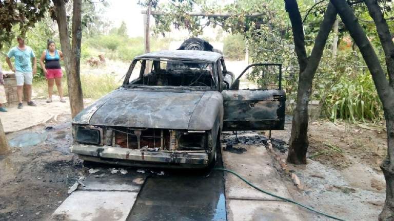 El incendio de un Ford Falcon asustó a todos en la Villa La Esperanza, en Zonda. Hasta ahí llegaron el cabo Gabriel Montaña y el agente Ever Quiroga, de la Comisaría 14ta, y se encontraron con el auto ardiendo en el garage de una casa.