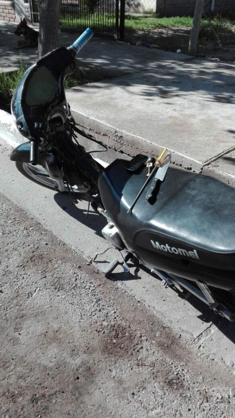 El malviviente fue reducido por los uniformados y ahí descubrieron que llevaba un cuchillo tipo carnicero de 20cm y un destornillador afilado. La moto presentabas signos de que hubieran forzado la cerradura del motor de arranque durante el robo.