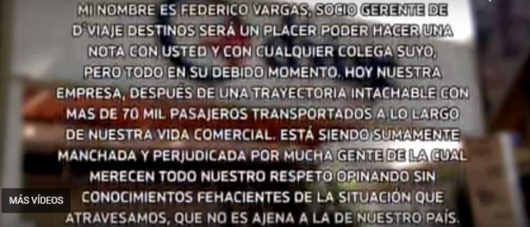 "Hoy nuestra empresa, después de una trayectoria intachable de más de 70 mil pasajeros transportados a lo largo de nuestra vida comercia, está siendo sumamente manchada y perjudicada por mucha gente sin conocimientos fehacientes de la situación que pasamos, que no es ajena a la del país", comenzó diciendo uno de los socios.