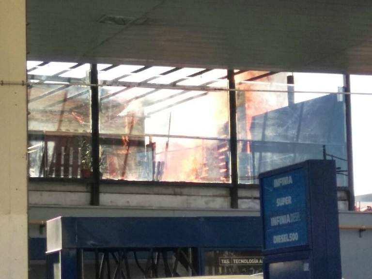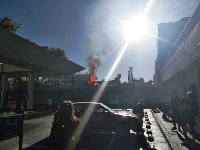 El momento de mayor tensión por el incendio de la terraza de un bar pegado a una estación de servicio en plena ciudad fue registrado por un lector de Tiempo de San Juan que compartió las fotos y el video.