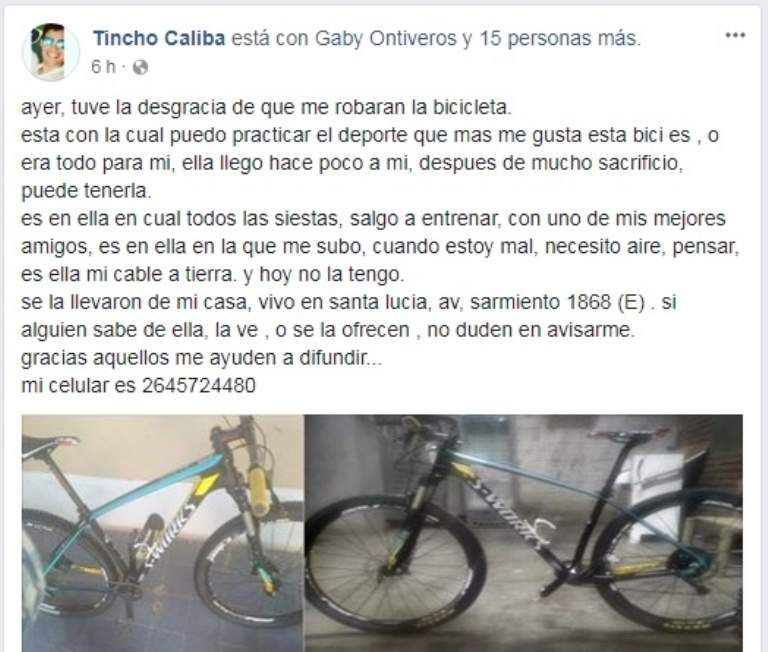 SUSCRIBITEUn joven al que le robaron su bicicleta pide ayuda en Facebook para poder recuperarla.