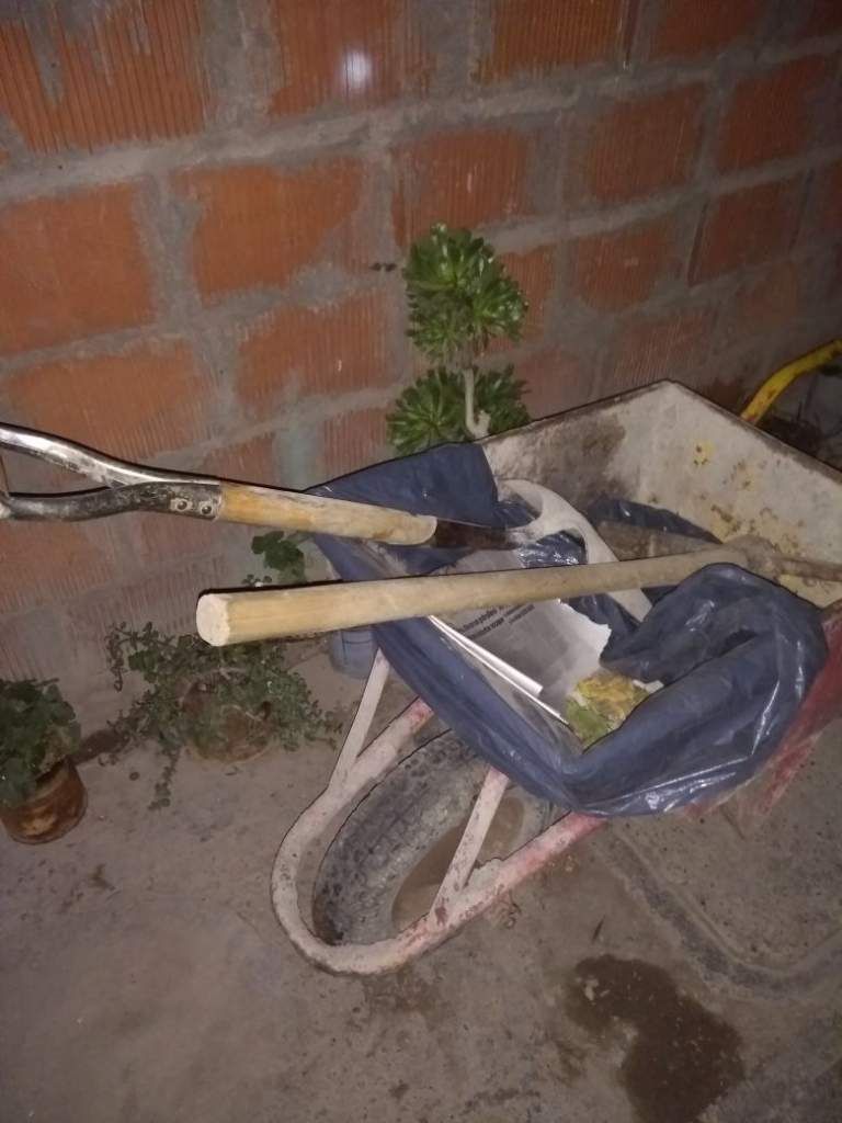 En ese momento el propietario corrió la cortina de su ventana y vio a un ladrón que se encontraba en una de las piezas en construcción. El hombre se vistió rápidamente y salió al cruce. Se encontró frente a frente con el malviviente, y vio cómo le estaba robando una pala, un pico y una carretilla. Al verse sorprendido, el ladrón soltó las cosas y comenzó a escapar hacia la calle.