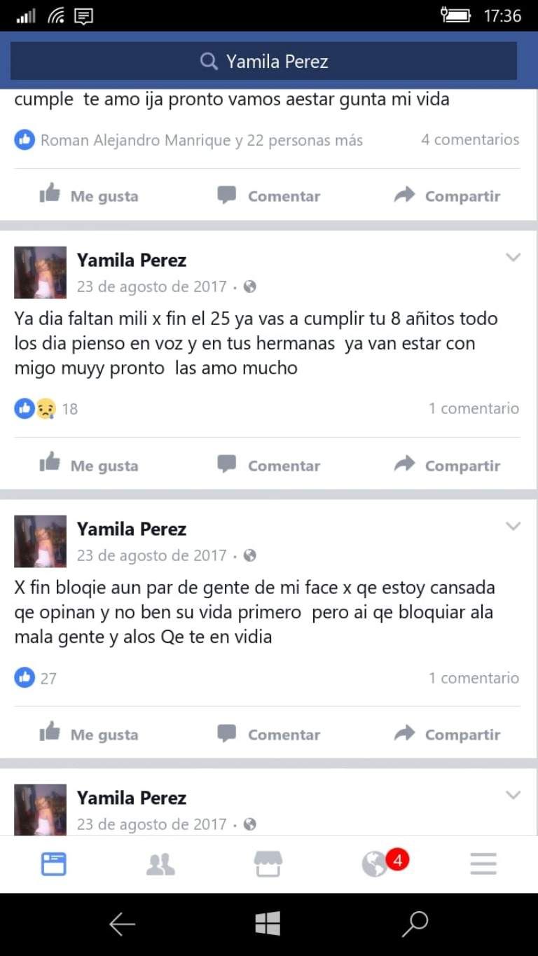 La última vez que realizó un posteo fue el jueves 14 de junio, a las 13 horas. Fue en la cuenta donde se hace llamar "La Yami del Cabot". En la publicación aparece una foto de su abuela y un emotivo mensaje hacia ella: "Como te estraño abuela te amo vieja de donde esta yose qeme esta cuidando te re amo".