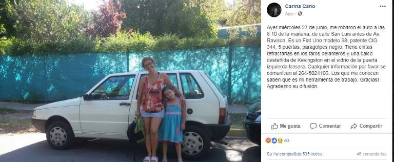 Como lo hace cada día, Carina Conte dejó estacionado su auto en las inmediaciones de las calles San Luis y Avenida Rawson para dejar a sus hijos en la escuela. Pero este miércoles, cuando regresó por su auto se encontró con que no estaba en el lugar que lo había dejado.