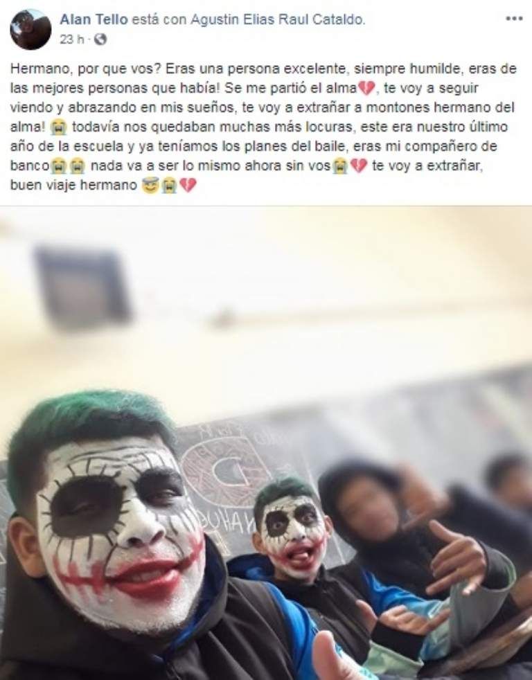 Luego de conocer la triste noticia del fallecimiento del joven de 18 años, Agustín Cataldo, quien agonizó durante un mes tras recibir un fuerte golpe en su cabeza que le provocó un derrame cerebral y lo llevó a la muerte, en las redes sociales, amigos y familiares se despidieron de él.