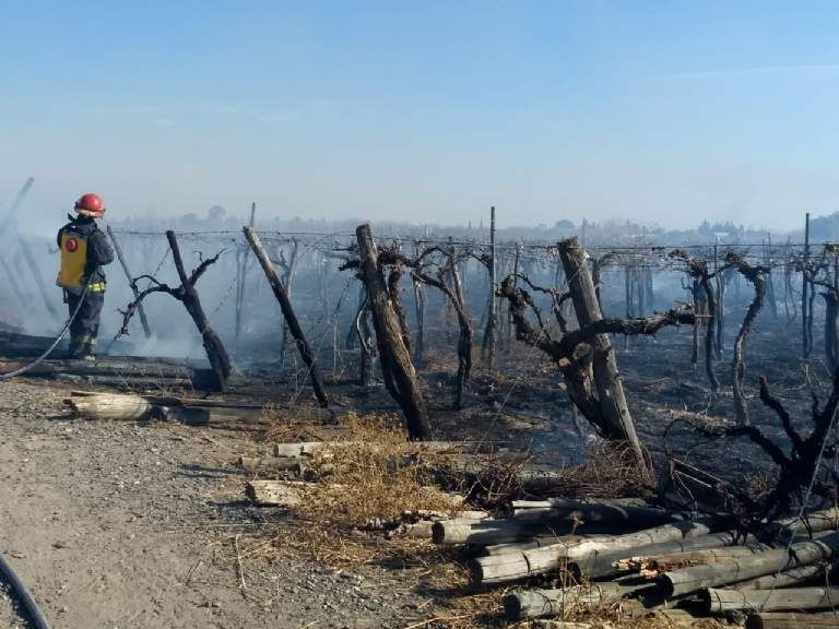 El primero de los siniestros fue el más importante, ya que se incendió una finca en calle Paula y Salta y parte de una bodega a un kilómetro del centro caucetero. En el lugar ardieron unas 3 hectáreas, dos de parrales y una más de pastizales. Además, se incendió el cierre perimetral de la bodega y ardieron unos 60 álamos que servían como medianera.
