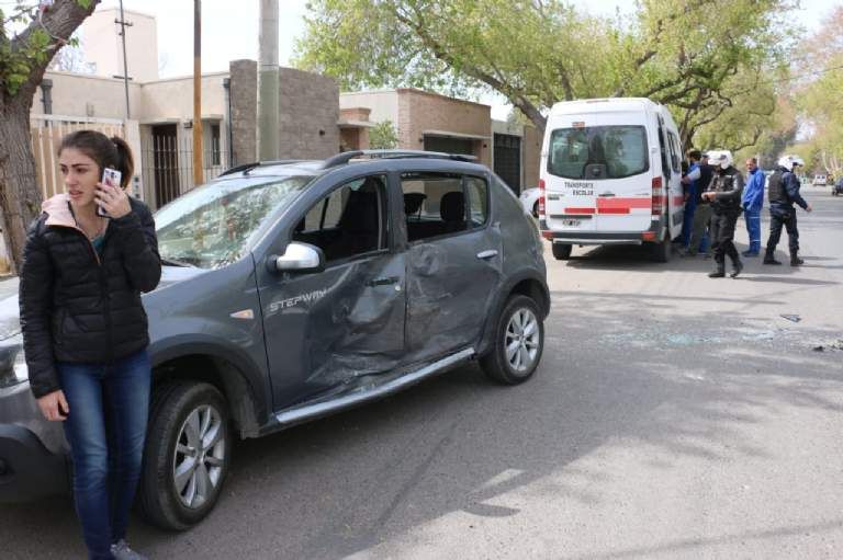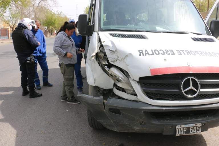 En la mañana de este viernes se produjeron dos siniestros viales separados por muy poca distancia y casi al mismo tiempo. En el primer caso se trata de una camioneta de transporte escolar que circulaba sobre calle 25 de Mayo con tres menores con discapacidad a bordo, pero antes de llegar al cruce con calle Ameghino un vehículo quiso girar en “U” y terminó impactando fuertemente contra la puerta del conductor. El otro caso se dio a los pocos metros en 25 de Mayo y Ramón y Cajal cuando una moto terminó impactando contra un auto que salía marcha atrás.