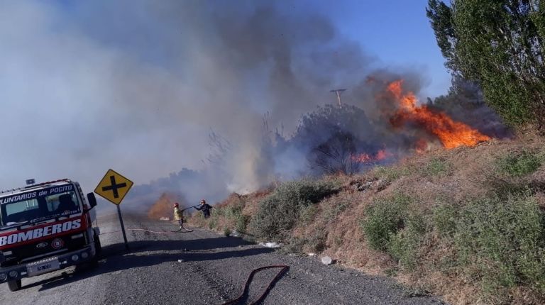 Este martes por la tarde, Bomberos Voluntarios de Pocito tuvieron que intervenir en un incendio de pastizales que puso en peligro varias viviendas que se encuentran por la zona.