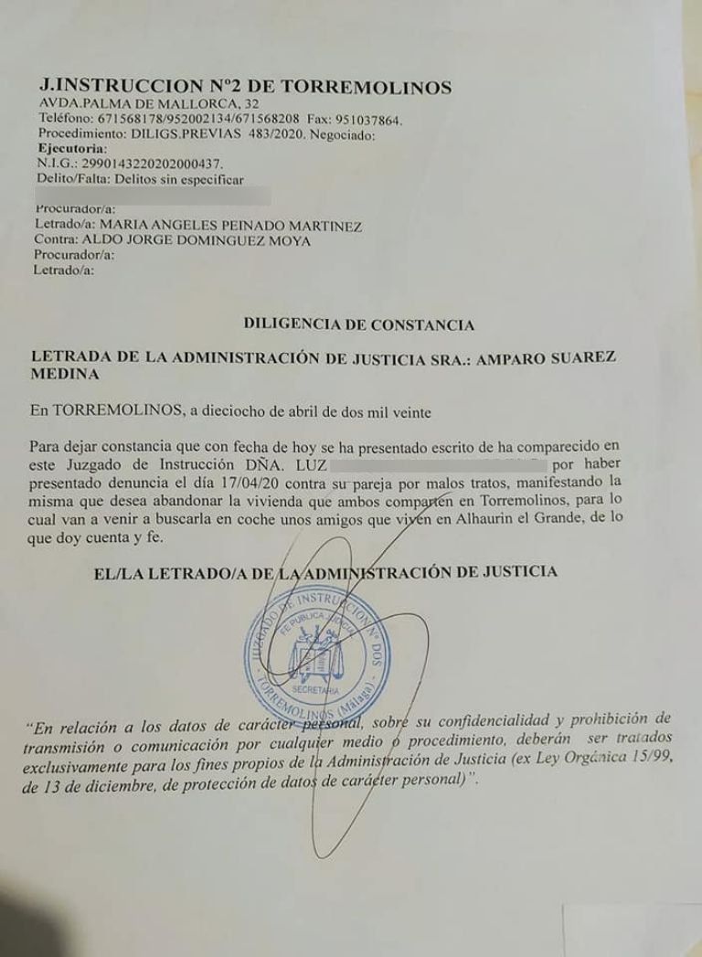La chica siguió relatando como la cuestión empeoraba día a día. "Cada vez eran más fuertes los insultos, empezó con empujones, agarrones y hasta me tiraba de la cama", sostuvo. Es por ello que Luz decidió denunciarlo y los policías de Mallorca, donde vivía la pareja, fueron a detener a Domínguez. "Lo tuvieron que medicar en los calabozos de lo inestable que estaba", indicó.
