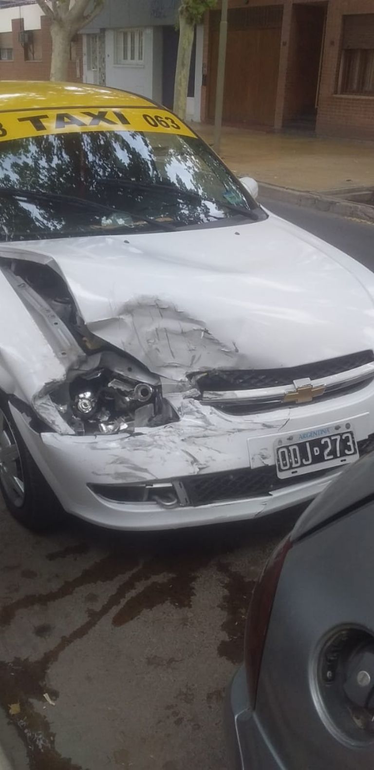 Según contaron testigos presenciales del hecho el auto Peugeot fue el que no vio el semáforo en rojo y terminó con el paragolpes desprendido, en tanto que el taxista sufrió daños considerables en la parte delantera del auto.